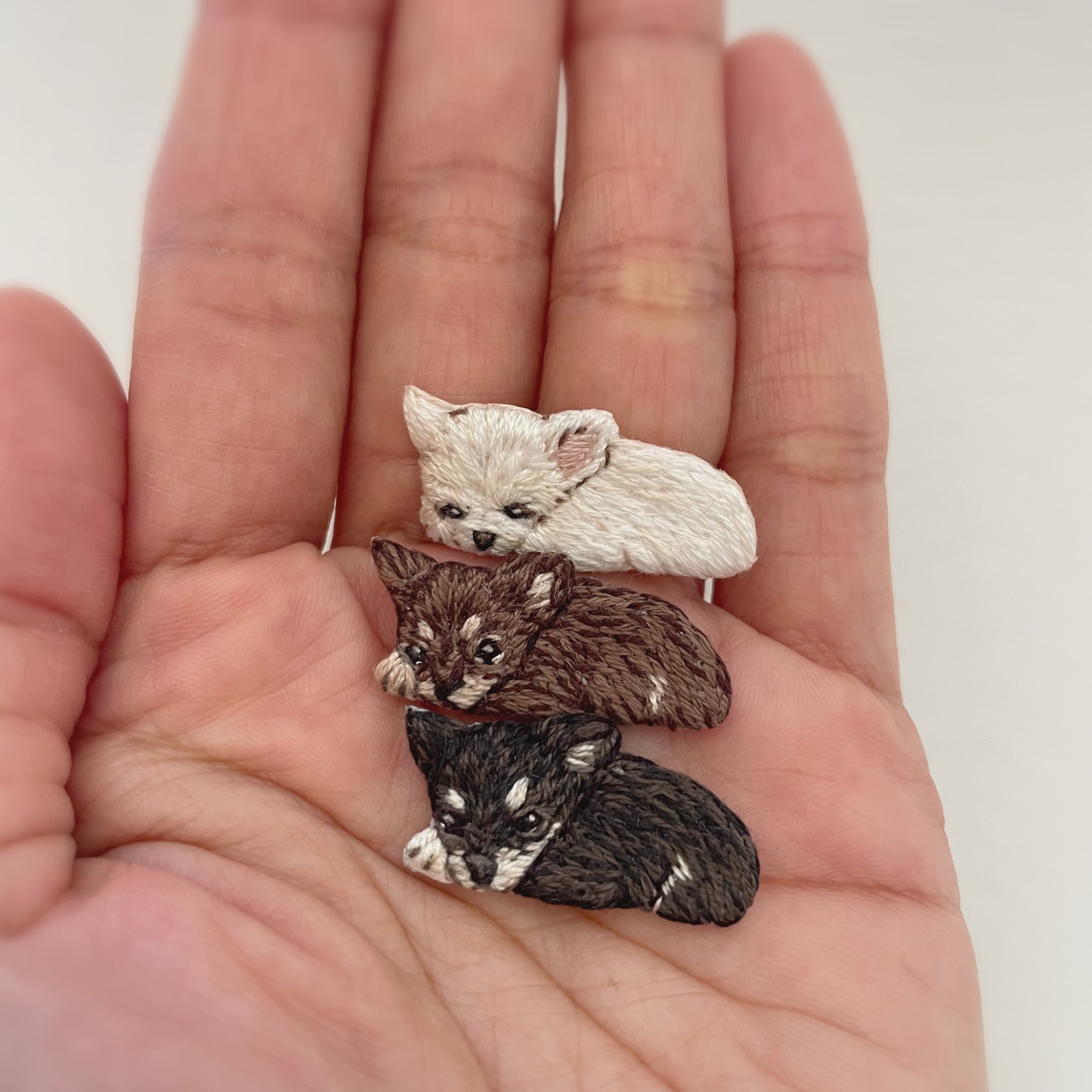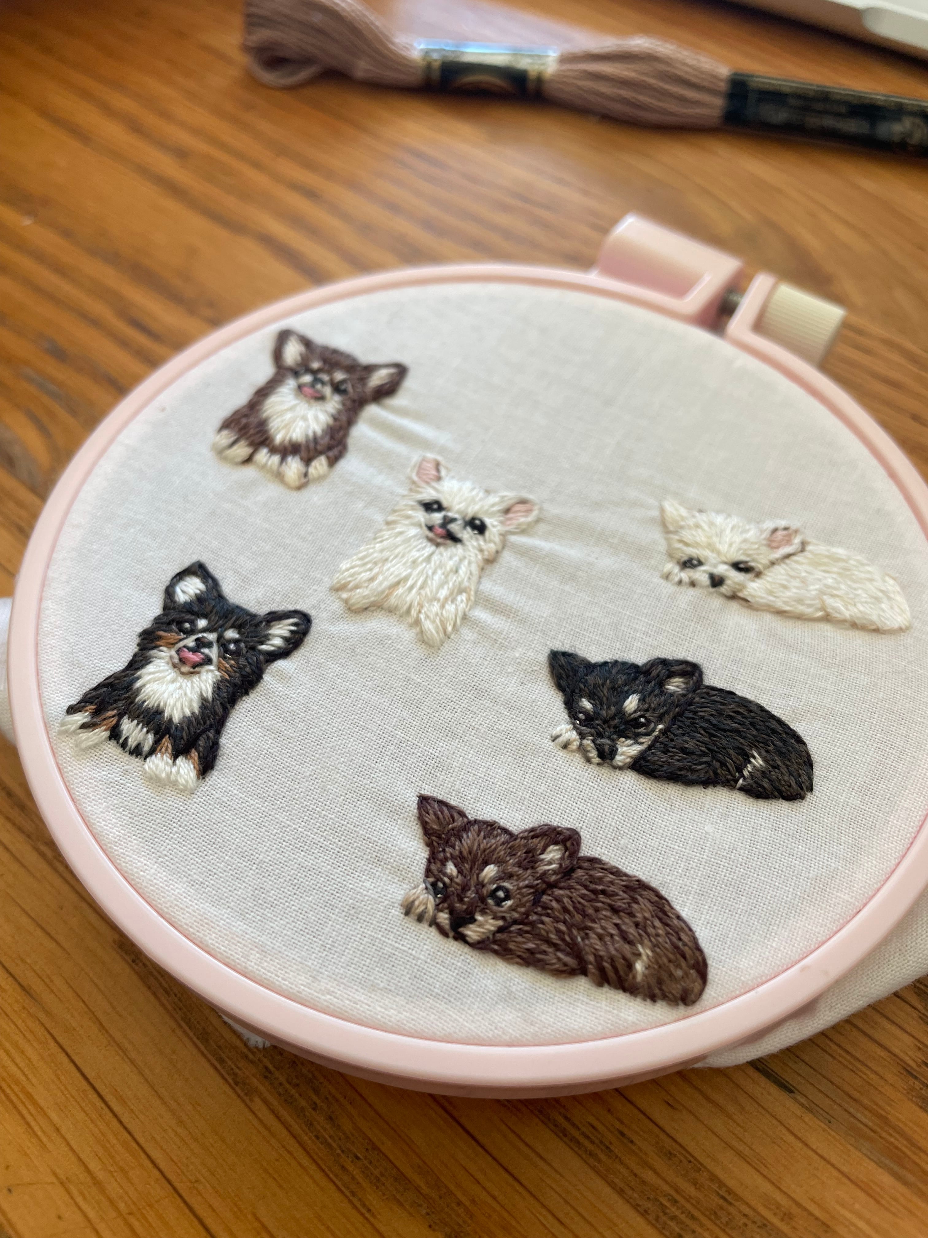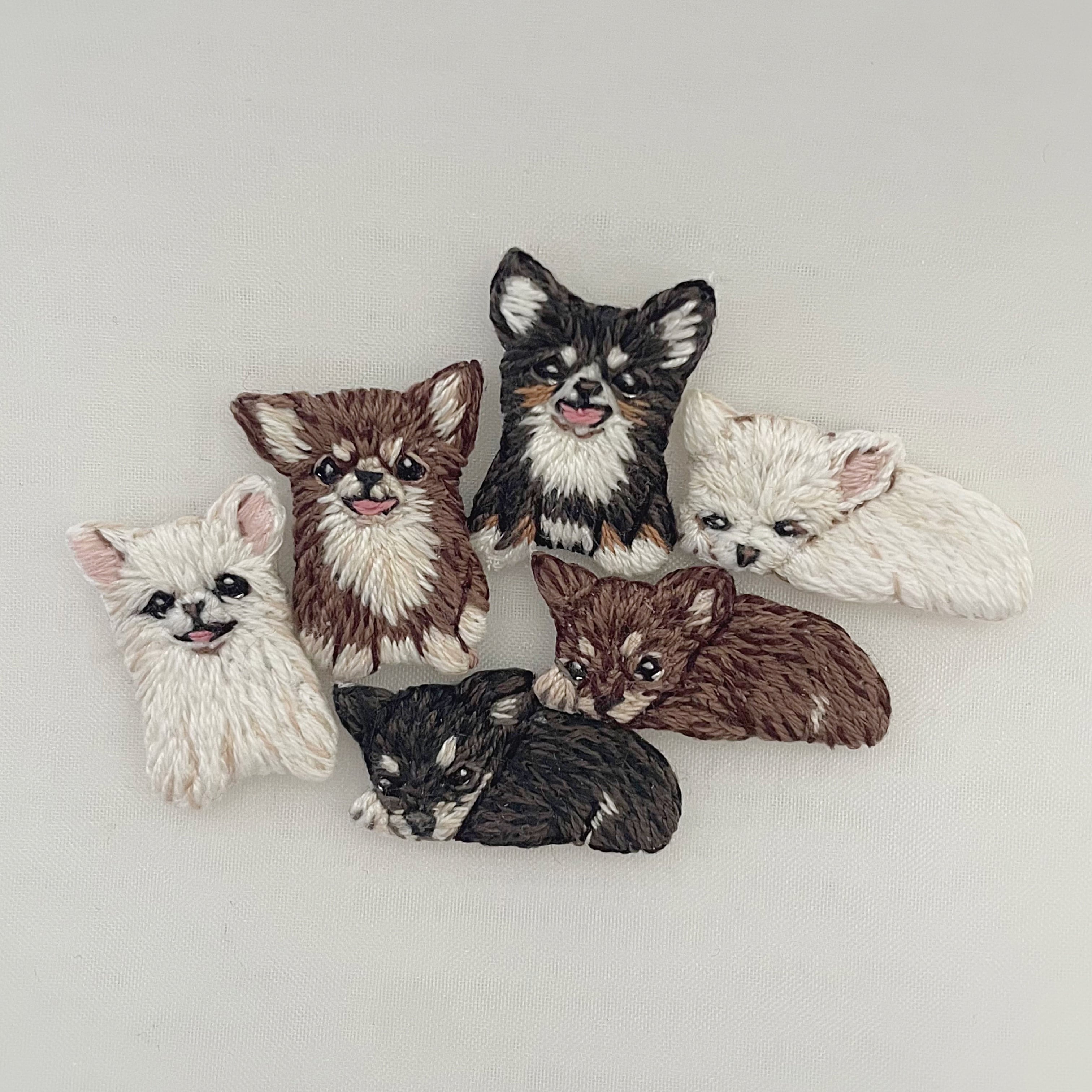 ペットたちの思わずキュンとしてしまう瞬間を小さな刺繍にしました♪