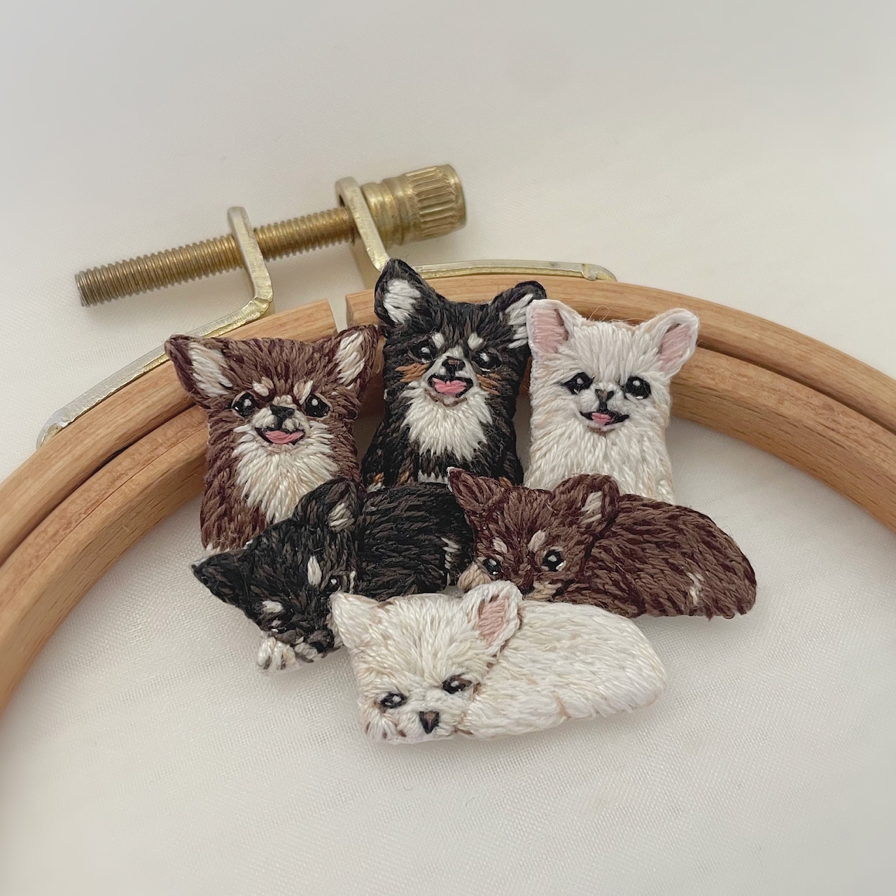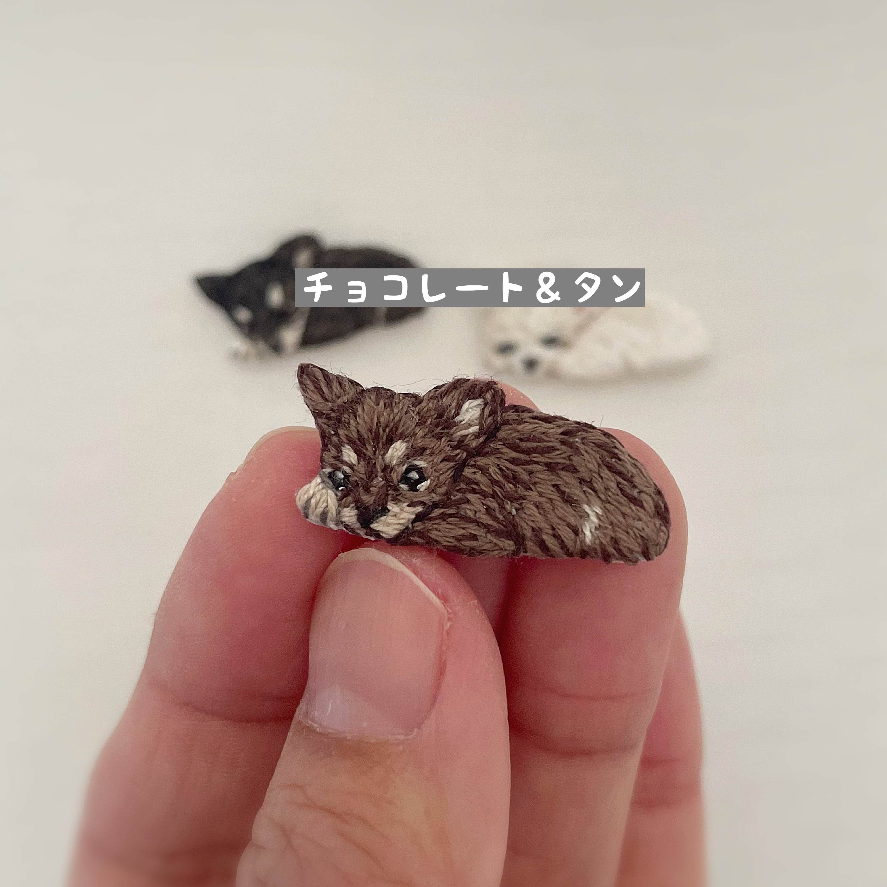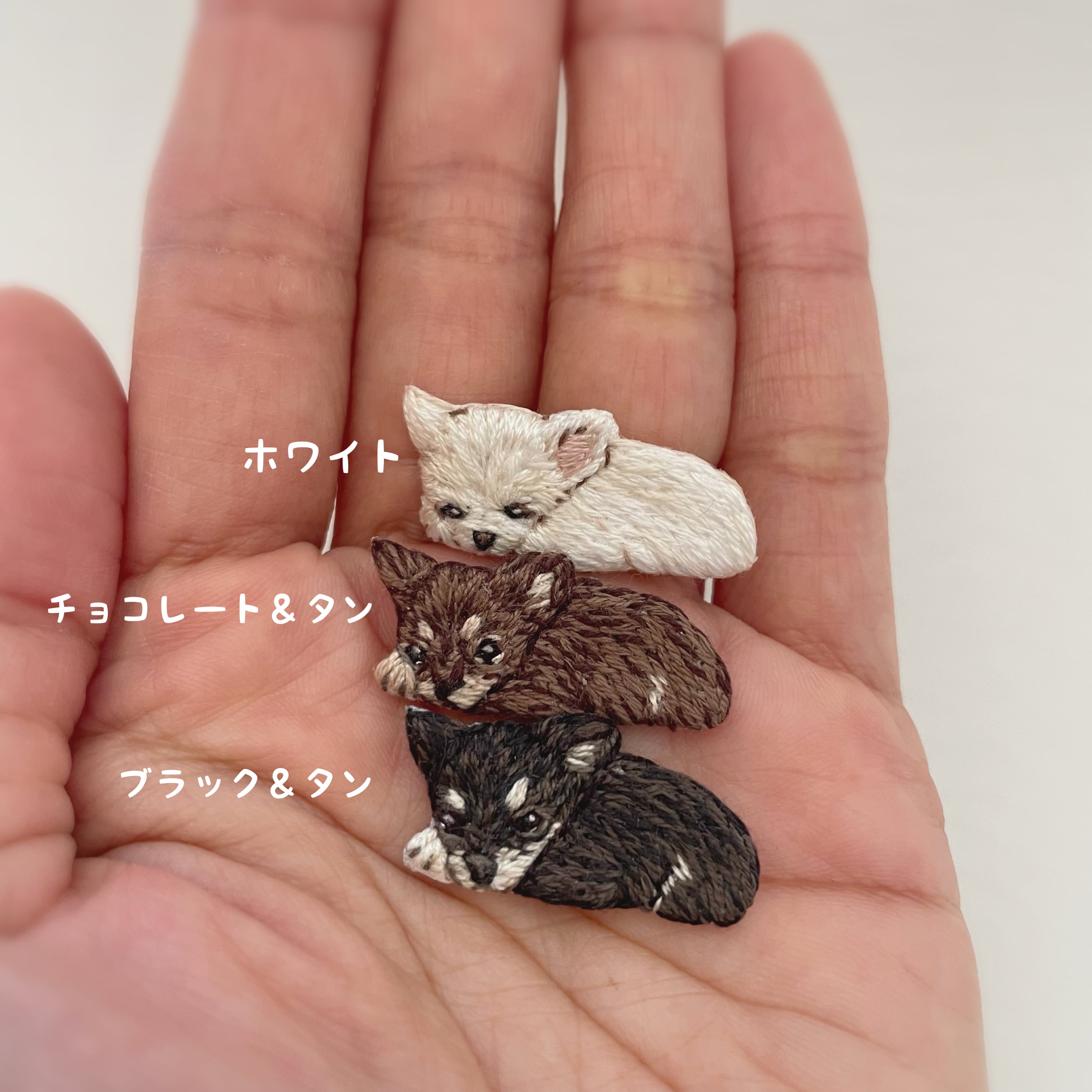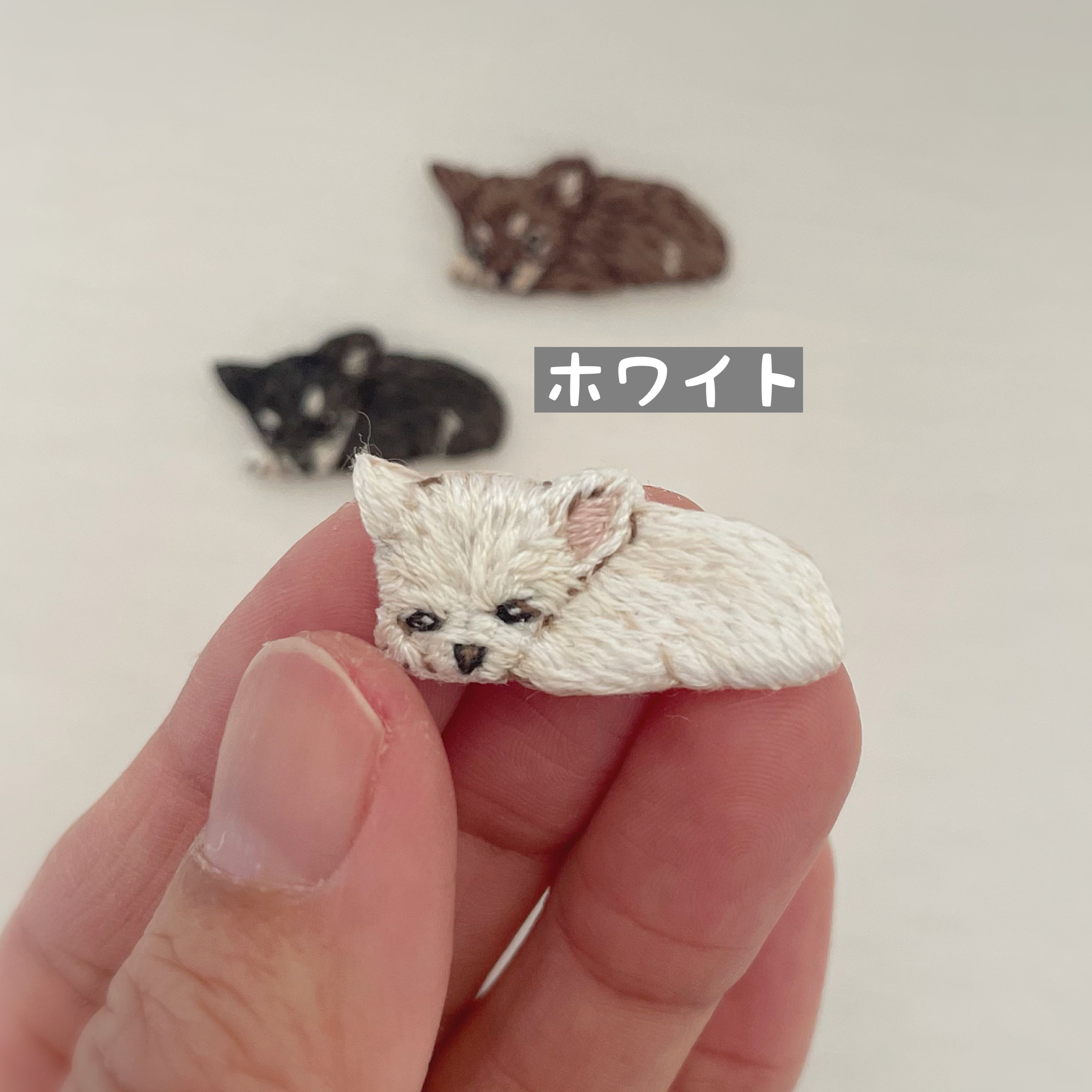 ペットたちの思わずキュンとしてしまう瞬間を小さな刺繍にしました♪
